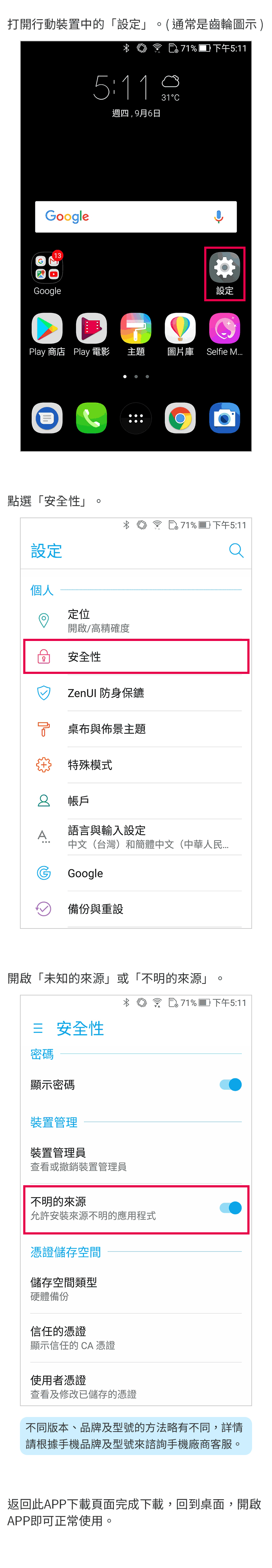 啟用 "未知來源" 流程說明